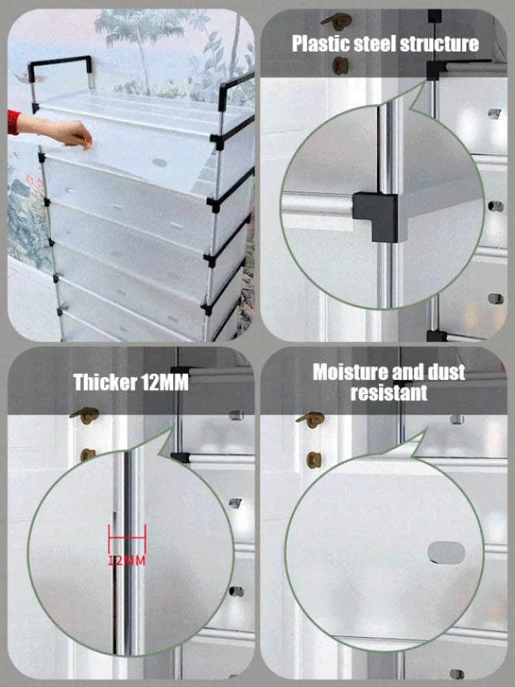 Durable & Sturdy – Built with stainless steel, thickened PP panels, and protective film to resist moisture, dust, and wear.